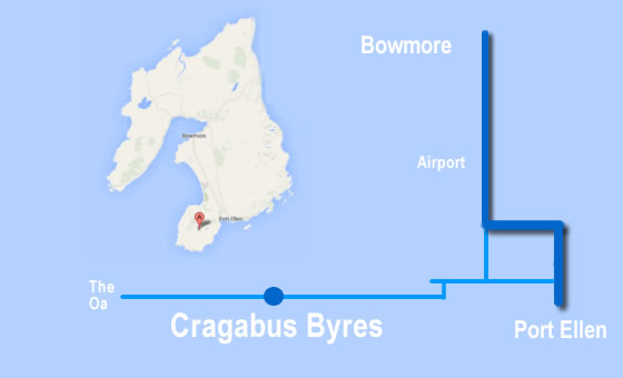 Cragabus Byres are situated amongst the stunning scenery of the Oa region on Islay, two and a half miles from the friendly village of Port Ellen on the southern tip of the island and two and a half miles from the American Monument. Islay is just a plane ride away from Glasgow or, alternatively, a ferry journey from Kennacraig on the Mull of Kintyre peninsula.